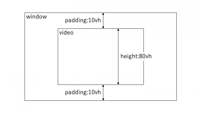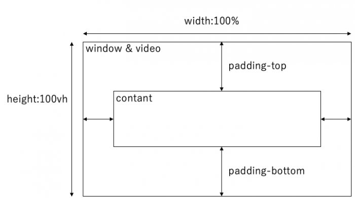 拡大後は、videoのheightとweightがwindowの高さ・幅と同じになります。contantも同様に画面中央になるように位置が調整されます。