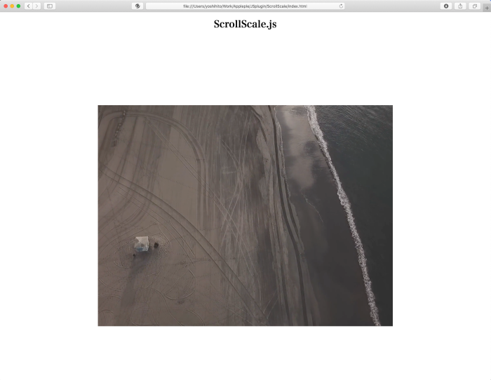 ScrollScaleはvideoが画面中央部に来たら画面中央を中心に拡大される処理を実現するJavaScriptのプログラムです(サンプルページ)。ソースコードはこちら。