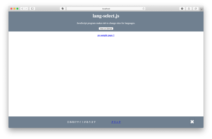 lang-selectはあるホームページを訪れた場合、そのホームページに訪れた人の第一言語版があった場合、第一言語版へのページ遷移を提案するプログラムです。サンプルサイト ソースコード